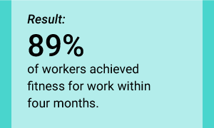 Our goal: Help at least 85% of workers achieve fitness to work within four months of their illness or injury.