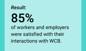 Our goal: Ensure at least 83% of workers and employers are satisfied with the timely, transparent and respectful service they receive from WCB.